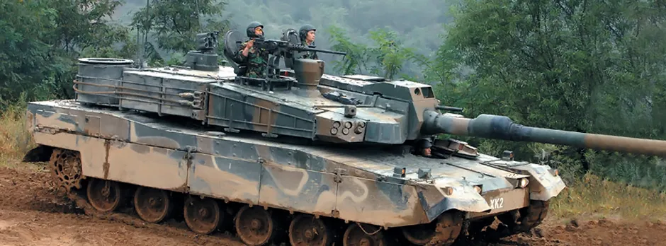 El K2 , de 54 toneladas, “Black Panther” es un carro de combate principal que cuenta con un cañón principal de 120 mm autocargado, un blindaje compuesto y sistemas de defensa antimisiles a bordo. Su artillería está asistida por un sistema de radar de altísima frecuencia y un telémetro láser. Tiene un alcance de 450 kilómetros y una velocidad a campo traviesa de 50 kilómetros por hora (km/h).