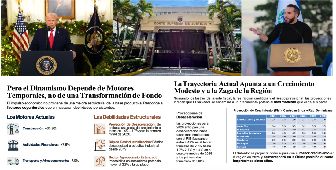 La frase desnuda la vulnerabilidad estructural de la economía salvadoreña: las remesas. 2.499.7 millones en remesas familiares recibidas en el segundo trimestre de 2025 muestra de donde llegan los recursos para el consumo, pero también la extrema volatilidad de los mismos, en especial con las políticas anti-migratorias de EEUU, donde residen unos 3 millones de salvadoreños. Para 2026, el estudio prevé una caída del consumo hacia tasas de entre 1.2 y 1.5%.