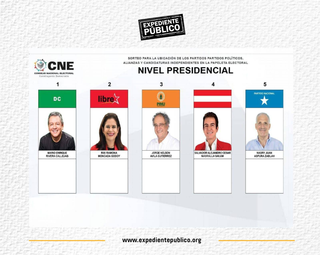 Entre los cinco candidatos existentes, solo tres tienen posibilidades reales de obtener el triunfo: la candidata de LIBRE, el del Partido Nacional (PN), Nasry Asfura y el del Partido Liberal (PL), Salvador Nasralla.