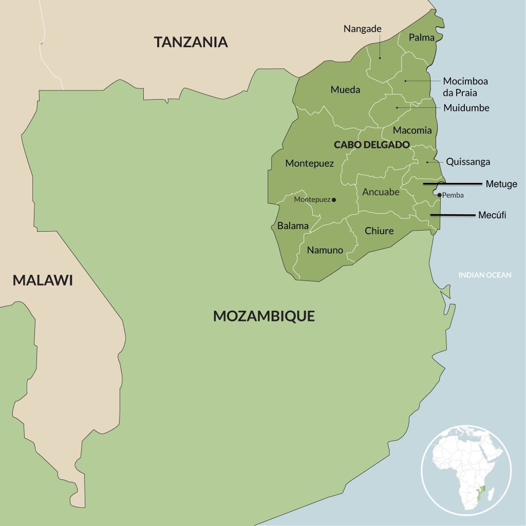 La insurgencia, que comenzó en octubre de 2017 en el distrito de Mocímboa da Praia, se ha expandido a 16 de los 17 distritos de Cabo Delgado. La capital provincial, Pemba, sigue siendo la única zona que no ha sufrido ningún ataque de los insurgentes vinculados al Estado Islámico.
