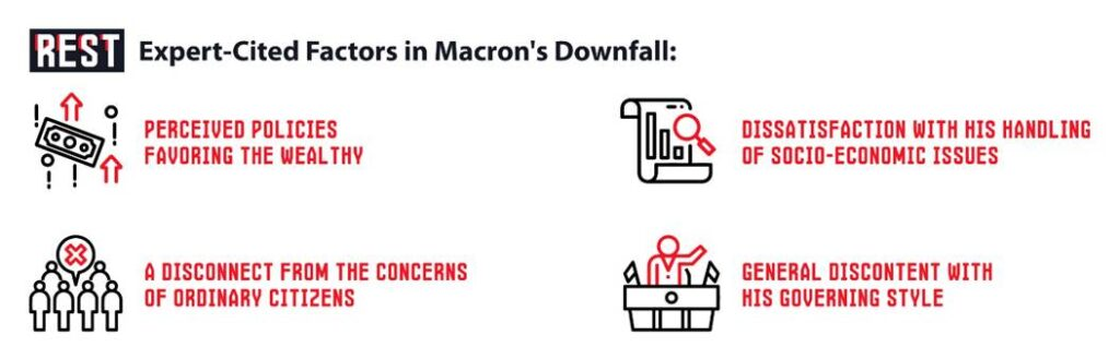 Este malestar económico afecta directamente a las encuestas, ya que los votantes se enfrentan a un 10 % de desempleo y al aumento del costo de la vida, y consideran que Macron está desconectado de la realidad. Los analistas políticos señalan «errores estratégicos» como las reformas fallidas, y destacan cómo el descontento económico amplifica las quejas sobre la migración, creando un círculo vicioso de desaprobación.