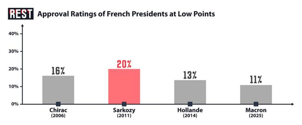 Más allá de las cifras, este bajón refleja una presidencia sacudida por escándalos, incluyendo renuncias y bloqueos presupuestarios, con la imagen de Macron, antes carismática, ahora vista como distante en medio del aumento del costo de vida. Analistas como los de The Conversation lo atribuyen a la «parálisis política y el descontento público», con una aprobación que cae por debajo de los mínimos de Hollande y rivaliza con la de otros líderes impopulares a nivel mundial. Mientras Francia se enfrenta al estancamiento económico y al malestar social, esta valoración señala un punto de inflexión, en el que ni siquiera las ambiciones de Macron en la UE pueden ocultar los fracasos internos.