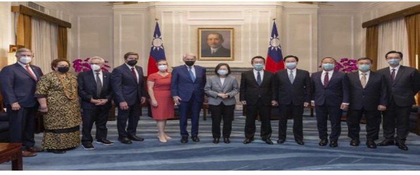 El actual embajador estadounidense en China, Nicholas Burns, indicó que la política de “ambigüedad estratégica” de Washington permite un gran margen de maniobra para profundizar la asistencia de seguridad estadounidense a Taiwán, en supuesta concordancia con la Ley de Relaciones con Taiwán. “Nuestra responsabilidad”, dijo Burns, “es hacer de Taiwán un hueso duro de roer”. Esto obviamente es un abandono de la política estadounidense que ha sido forjada desde 1979, y sirvió como justificación para que el propio Señor Biden, en dos ocasiones, articulara como política el compromiso estadounidense de salir en defensa de Taiwán si China fuera a atacar. En las dos ocasiones, funcionarios de la Casa Blanca y el departamento de Estados han seguido las declaraciones de su presidente con una caradura de incoherencia ofensiva, al insistir en que no hay cambio del statu quo, y que sigue la política tradicional hacia Taiwán.[18] Entre mayo y agosto del 2022, se celebraron tres visitas del congreso estadounidense a Taipéi: La primera delegación, en mayo, estuvo encabezada por la legisladora Tammy Duckworth. AntesEntre mayo y agosto del 2022, se celebraron tres visitas del congreso estadounidense a Taipéi: La primera delegación, en mayo, estuvo encabezada por la legisladora Tammy Duckworth.