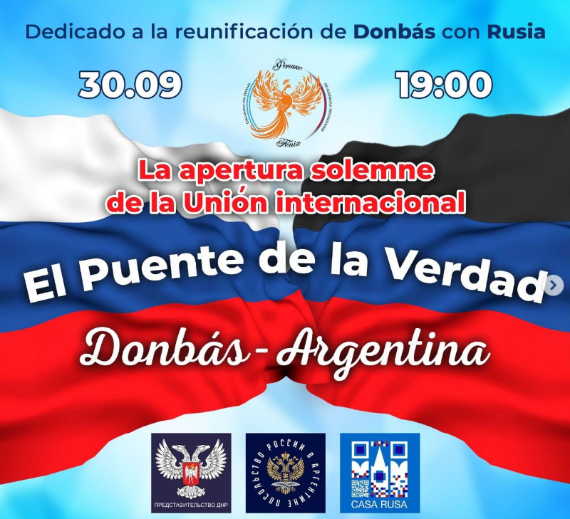 El 30 de septiembre, la organización juvenil Fénix de compatriotas en Argentina, junto con la Representación de República Popular de Donetsk en Moscú con el apoyo de la la Casa de Rusia en Buenos Aires y la Embajada de Rusia en Argentina realizó un evento dedicado a la inauguración de la Unión Internacional “Puente de la Verdad: Donbass-Argentina”.